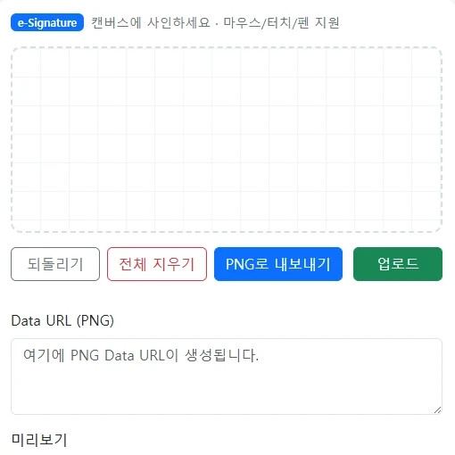 작성된 서명은 PNG 이미지로 추출 가능하다.