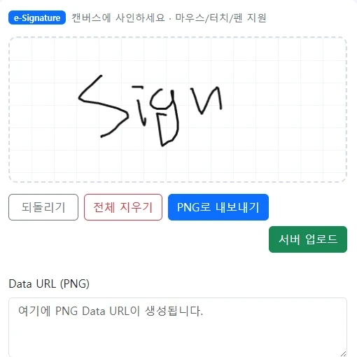 다음에는 드래그 이동, 색상 선택, 선 굵기 변경 같은 옵션도 넣어서 더 완성도 있는 e-Sign 모듈로 발전시킬 계획이다.